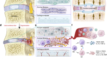 Physiological intervertebral discs lack blood vessels and consist primarily of a cartilage matrix. Inflammation and sensory nerve intrusion due to disc degeneration cause low back pain 10,11,12,13,14. Vascular invasion of the outer annulus fibrosis has been observed in degenerated discs, but the inflammatory process in disc degeneration remains unclear 15,16,17.