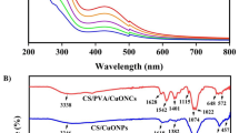 Upon incorporation of rutin into the PVA matrix, the resulting spectrum (PR film) exhibits a noticeable shift in the –OH stretching band from 3287 cm−1 to 3216 cm−1. This shift implies the formation of hydrogen bonding interactions between the hydroxyl groups of PVA and the phenolic -OH groups of rutin, suggesting good compatibility and molecular interaction between the two components20. Further modification of the PR film with CuO nanoparticles (resulting in PRC-1, PRC-2, and PRC-3) did not introduce any new characteristic peaks, indicating that the addition of CuO did not significantly alter the chemical structure of the PVA/rutin matrix. The major absorption bands observed in PRC films remain similar to those of the PR film, signifying that the incorporation of CuO nanoparticles mainly contributes to physical interactions rather than forming new chemical bonds with the polymer or rutin components (Scheme 1). This observation is consistent with literature reports where metal oxide nanoparticles are dispersed in polymer matrices without altering the primary functional group signatures36. Overall, the FTIR analysis confirms the successful incorporation of rutin and CuO into the PVA matrix, with evident molecular interactions between PVA and rutin, while CuO remains chemically inert within the blend37.