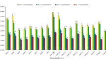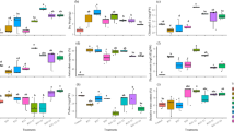 Chlorophyll a, b, and total chlorophyll content were measured using the method described by Porra (2002)67 while anthocyanin content was quantified following the procedure outlined by Sims and Gammon (2002)68. Carotenoid content was assessed according to the method of Lichtenthaler and Welburn (1983)69. A 500 mg leaf sample was homogenized with 5 ml of 80% acetone and centrifuged at 13,000 × g for 15 min (Prismr, Labnet, USA). The supernatant was then adjusted to a final volume of 10 ml with 80% acetone. Absorbance was measured at 663 nm, 470 nm, 646.6 nm, 663.6 nm, 647 nm, and 537 nm using a spectrophotometer (Specord 50, Analytic Jena AG, Germany). The absorbance values were used to calculate the content of chlorophylls, anthocyanins, and carotenoids in milligrams per gram of fresh weight using the appropriate equations.