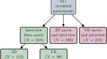 However, future research is needed to disentangle whether VR exploration primarily promotes familiarity with an area, thereby increasing concern for it, or whether VR fosters identification with the people in impacted places by simultaneously presenting a climate event occurring in the visited location13,42. Future studies should explore the variety of VR experiences that might encourage positive climate action58,59. While our study focused solely on how exposure to a news story about climate change-induced flooding affected climate emotions and risk perceptions, it would be valuable to investigate whether narratives about overcoming climate-related disasters can foster greater community resilience and inspire climate action by evoking feelings of hope and awe29,60.