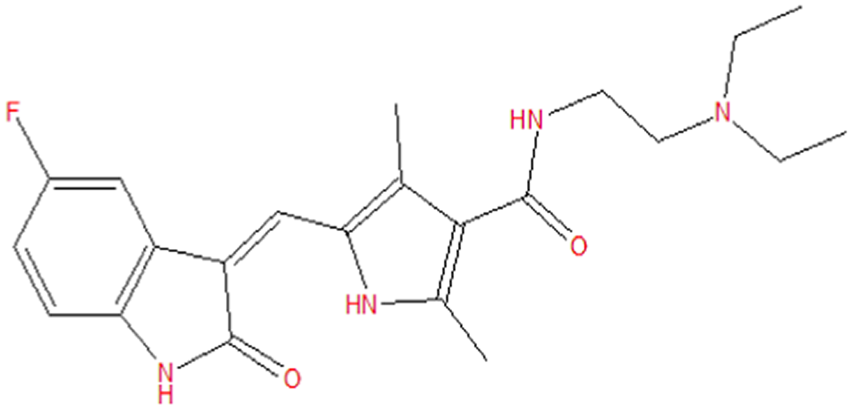 Table 1 Binding energies (Kcal/mol) with 2D structures of top 10 lead compounds, control compound Sunitinib, and Pyrrolopyrimidine.