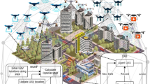 The proposed framework can operate in two modes, static UAVs mode, and mobile UAVs mode. In static UAVs mode, UAVs update their locations according to a predefined frequency of running the framework, which is more energy efficient34,35,36. In mobile UAVs mode, DRL algorithm run continuously when the framework is in the off periods, thus UAVs will update their locations continuously. Exploiting the full UAVs mobility will eventually results in better performance in terms of GDs satisfaction37,38,39. The frequency of running the framework is left as a parameter to the operator, since it depends on the mobility nature of the GDs in that specific hotspot area (i.e., frequency of changing their locations), and it depends on the minimum acceptable satisfaction index the operator would like to achieve.