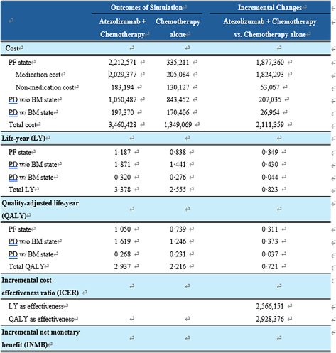 2. Medication cost: include cost from atezolizumab and chemotherapy. non-Medication cost: include cost form surgery, therapy for adverse events, radiotherapy and other health resource cost for SCLC. PD state cost includes subsequent therapy, surgery, radiotherapy and other health resource cost for SCLC.