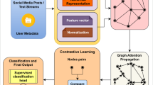 Ruchansky et al.20 suggested the CSI (Capture, Score, and Integrate) model for fake news automatic detection. The hybrid model utilizes Recurrent Neural Networks (RNN) to capture individual behavior (users and articles) and collective user interactions involved in the propagation of fake information. Content and behavioral patterns are both integrated by the CSI approach, which provides a deeper analysis than content-based methods. In the field of multimodal detection, Albalawi et at21. proposed a two-stream deep learning architecture called Coupled ConvNet. The framework processes both visual and textual data using separate CNN streams before fusing the results using weighted combination for evaluation. Their approach addresses the increasing phenomenon of deceptive text being complemented by misleading images in fake news dissemination. Several researchers have investigated GCN-based approaches to rumor detection and misinformation propagation on social media22,23,24,25,26. These approaches represent the diffusion patterns of information as graphical representations, and in doing so, facilitate the examination of interrelations among content pieces, users, and interaction patterns. Various datasets derived from Twitter and Weibo have been utilized to validate the utility of graph-based models in identifying the structural patterns that are indicative of fake news propagation. Do et al.27 proposed a multi-entry neural network architecture (MENET) to model different kinds of data that aimed to predict the geographical location of Twitter users. Although effective, Graph Convolutional Neural Networks have increased computational demands both temporally and spatially54. To alleviate this issue, Xu et al.28 proposed an improved model of Graph Neural Networks called Hierarchically Aggregated GNN (HAGNN) for rumor detection with accuracies of 95.7% and 88.2% on the Weibo dataset.For feature extraction, Sharma et al.25 suggested the Fake News Ratio as a novel measure aimed at extracting unique features from real-world datasets. Their method came with extra complexities that had to be improved.
