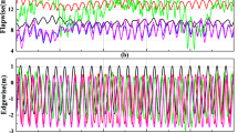 Where \({q_r}=\left[ {\begin{array}{*{20}{c}} u&v&\theta &\varphi \end{array}} \right]\) represents the generalized coordinates, \({\dot {q}_r}=\left[ {\begin{array}{*{20}{c}} {\dot {u}}&{\dot {v}}&{\dot {\theta }}&{\dot {\varphi }} \end{array}} \right]\) denotes the generalized velocities, \({{\mathbf{Q}}_{\mathbf{r}}}=\left[ {\begin{array}{*{20}{c}} {{F_u}(t)}&{{F_v}(t)}&0&0 \end{array}} \right]\) is the generalized force, while T, V and F represent the system’s kinetic energy, potential energy, and dissipation functions, respectively.