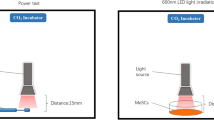 The light source used for irradiation was a Flashlight K31 Series Research Light Source device (CZLIGHT Sdn Bhd, Shenzhen, Guangdong, China). The output power at the material irradiation distance was determined with an SM206E (for testing 400–405, 500–505, and 700–710 nm) and SM206-NIR (for testing 1064 nm) photo power meter (Xin Bao Sdn Bhd, Shenzhen, Guangdong, China). Irradiation was conducted in a CO2 temperature-controlled incubator at 37 °C. The Light-Emitting Diode (LED) light source was maintained at a distance of 17 mm from the cells during irradiation, and the spot size was 35 mm in diameter (Fig. 1). The power meter was used to determine the power density (W/cm2) in the area of light exposure, and the required irradiation time was calculated using the following formula: