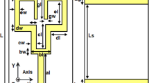 The antenna design presented here draws inspiration from the structural form of a medical syringe, characterized by a slender vertical body, a finger rest, and a plunger head. This syringe-like geometry not only offers a compact and easily integrable profile but also enables efficient current distribution along the radiating elements. The vertical shaft mimics the needle pathway to facilitate directed radiation, while the horizontal arms enhance impedance matching and bandwidth performance. The unique syringe-inspired configuration combines both aesthetic simplicity and functional effectiveness, rendering it ideal for modern wireless communication applications. Moreover, designing a compact and effective antenna for WBAN applications is a major issue. Conventional antenna designs, notably rectangular patch antennas, require larger sizes to produce resonance at lower frequencies, such as 2.4 GHz. A rectangular patch antenna operating at this frequency typically requires a dimension close to one-quarter of the wavelength (λ/4). To solve this difficulty, this work employs a planar monopole design method. Initially, the antenna design arrangement was based on the fundamental microstrip-fed antenna. The patch size, including length and width, is determined via a transmission line model detailed in45. The CST Microwave Studio software, a finite-integration-based solver for 3D EM modeling, is employed to explore and optimize parameters related to the designed antenna. Initial designs were simulated, and the patch’s length and width were repeatedly changed based on the reflection coefficient (S11) results. Figure 2 illustrates the finalized antenna structure and dimensions on Rogers RO3003™ material (relative permittivity \(\:{\epsilon\:}_{r}\) \(\:=\:3\), thickness = 0.5 mm, loss tangent = 0.0013). Table 1 summarizes the optimized parameter values for the antenna.