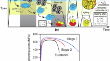 These data are useful regarding their influence as potential strengthening mechanisms resulting in the observed tensile behavior. It is understood that irradiation induced features including dislocation loops and precipitates contribute to strengthening of the material by acting as barriers to dislocation slip, typically quantified in a dispersed barrier hardening (DBH) model18,19,20,21. Other strengthening factors in HT-9 are relatively constant before and after irradiation, including the hierarchical grain structure including laths organized into packets into prior austenite grains, and solid solution strengthening. The DBH model has shown good agreement in irradiated metals and is the predominant mechanism used for calculating strengthening due to irradiation induced defects.