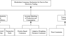 In blockchain-based P2P energy trading systems as shown in Fig. 16, microgrids play a vital role and act as the foundation where power exchange, load balancing, multidirectional power flow, and distributed control take place. These microgrids are heterogeneous in terms of control, architecture, scale, consumption patterns, and proportion of energy derived from DERs. Therefore, the decision to select a suitable consensus protocol must be derived by considering all the above-mentioned parameters. Table 9 encapsulates all the results obtained and recommends a suitable microgrid framework for each of these protocols based on their performance metrics and attributes. Government or audit-critical grids are generally centralised inter-microgrid or large-scale microgrid systems that are operated by government agencies or utility-scale energy distributors with a modest DER penetration and a very large node count ranging between 1000 and 10,000 participants with a daily energy demand of over several thousand kilowatt-hours. In these grids, transparency, immutability, legal compliance, and forensic verifiability are more important than operational speed and power consumption. Therefore, PoW is the most suitable in this scenario due to its high tamper resistance, and trusted finality despite its high power consumption. Immutability and fork resilience in PoW are of utmost importance for government-backed subsidies and forensic billing.