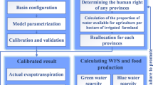 The VWC of crops (\(\:{VWC}_{(i,c)}\)) in this study was estimated based on the five-arc-minute gridded water footprint dataset published by Zhuo42. This dataset was generated using the AquaCrop model, which simulates soil water dynamics by tracking water inflow and outflow in the root zone. Specifically, it calculates daily blue and green water evapotranspiration, as well as crop yield during the crop growth period. For more detailed information on the datasets, please refer to Wang54 and Zhuo42. To reduce the influence of interannual rainfall variability on blue and green water estimates, the VWC was calculated as the average value for the period of 2000–2014. In this study, we combined food production and consumption data, as well as population data for 2020, with the long-term average dataset, as more recent basin-wide water-use data are not yet available. This approach provided consistency and ensured that the assessment results for 2020 were representative of typical hydrological conditions.
