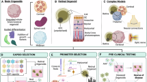 RNA extraction from single organoids was performed using the Direct-zol RNA Microprep Kit (Zymo Research, #R2060) according to the manufacturer’s instructions. Briefly, individual organoids were washed in PBS and dissociated in 400 µL of TRIzol Reagent (Invitrogen, #15596026) by pipetting, followed by centrifugation at maximum speed. The supernatant was transferred onto the spin column and centrifuged at 16 000 × g. DNase I treatment was performed for 15 min. After wash steps, RNA was eluted in RNase-free water and the concentration was determined using the NanoDrop (ND-1000). Subsequently, cDNA was generated via reverse transcription using SuperScript IV VILO (Invitrogen, #11766050). qPCR was performed using SsoAdvancedUniversal SYBR Green Supermix (Bio-Rad, #1725271) on a QuantStudio5 system (Applied Biosystems). All primers used are listed in Table 1. Data analysis was performed using the ∆∆Ct method.