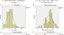 The variance analysis for all the investigated traits is given in Table 2, with agronomic traits presented in Fig. 2 and the high-performing barley crosses per generation for grain yield (GY) and yield components summarized in Table 3. Genetic parameters are given in Table 4, and the GCA effects of parents, SCA of hybrids, and Ht and Hb values are presented in Figs. 3, 4 and 5, respectively.