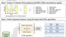 Traditional machine learning methods are widely used in current related research. Their relative simplicity allows efficient generalization on small data sets, making them suitable for fNIRS signal processing. Several recent studies have used support vector machines (SVMs) to classify fNIRS signals. This model has been successfully used to detect abnormal brain activation patterns in adolescents with major depressive disorder28, to predict the individual Autism Diagnostic Observation Schedule29, or to assess cognitive workload30. This classifier has also been shown to be particularly effective when combined with feature reduction techniques such as minimum redundancy maximum relevance31 or principal component analysis (PCA)32.