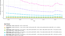 We calculated Age-adjusted mortality rates (AAMRs) per 100,000 population by year, sex, race/ethnicity, state, and urban–rural status, along with 95% confidence intervals (CIs). National temporal patterns in AAMRs were assessed using the Joinpoint Regression Program version 5.4.0, National Cancer Institute16, which identifies statistically significant changes in trends over time using log-linear models. Annual percent change (APC) and corresponding 95% CIs were reported. The APC measures the yearly rate of change in mortality within a given period, while the AAPC summarizes these changes to show overall long-term trend by providing a weighted average across multiple time segments. These indicators are integral to population-level analyses using CDC WONDER mortality data, as they account for non-linear trends over time and quantify the change in patterns over time. Statistical significance defined as a two-tailed P-value < 0.05.