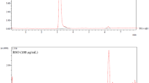 The tyrosinase inhibition assay was performed according to the modified dopachrome method35. Practically, the inhibition of the enzyme was assessed by monitoring the enzymatic metabolization of L-tyrosine substrate according to the HPLC method described. According to the used protocol, 70 µL of different concentrations of the samples were added to a 96-well microplate. Then, 100 µL of 1 mM L-tyrosine and 30 µL of mushroom tyrosinase (500 U/mL), both of them prepared in 50 mM sodium phosphate buffer pH 6.5, were added, mixed well, and incubated at room temperature for 30 min. After this incubation time, the enzymatic reaction was stopped by the addition to each sample of 100 µL of methanol. The analyzed standards and the extracts were dissolved in 100%v/v DMSO and diluted with 50 mM sodium phosphate buffer, pH 6.5, to obtain a final concentration of 1% v/v DMSO in the enzymatic mixture. Kojic acid was used as a positive control, while the control was performed by replacing the sample with an equal volume of buffer. In the HPLC assay, enzymatic activity was evaluated as a decrease in the chromatographic L-tyrosine peak area for the tyrosinase reaction of the enzyme. The L-tyrosine peak area was normalized to the 1 mM L-tyrosine peak area. The inhibitory effect was expressed as the concentration required to inhibit L-tyrosine metabolism by 50% (IC50)36.