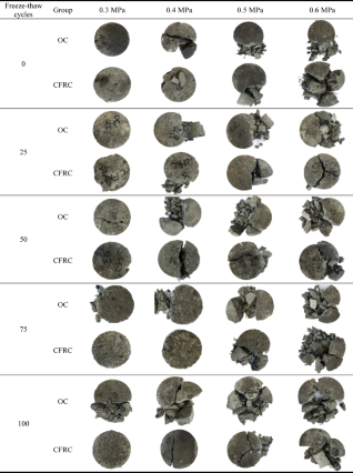 Table 8 Impact failure patterns of OC and CFRC under different freeze–thaw cycles.