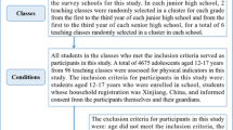 In this study, participants were sampled using stratified whole cluster random sampling. In the first step, Changchun, Guangzhou, Xi’an, and Chizhou in the northern, southern, western, and eastern regions of China were selected as the sampling areas for this study based on the division of China into different geographic regions. In the second step, two secondary schools were randomly selected in each city as the sampling schools for the participants of this study. In the third step, in each school, 3 teaching classes were randomly selected in whole clusters for each grade according to grade level. All students who met the inclusion conditions of this study were assessed for relevant indicators as participants of this study. The inclusion criteria for this study were: adolescents aged 13–18 years enrolled in school, who volunteered to be assessed for this study, and received informed consent from their parents. In the end, a total of 9456 adolescents aged 13–18 years from 144 teaching classes in 8 schools in 4 cities were assessed in this study. After the assessment, 252 invalid questionnaires were excluded, and a total of 9204 valid questionnaires were returned (4637 boys, 50.4%), resulting in a valid return rate of 97.34%.