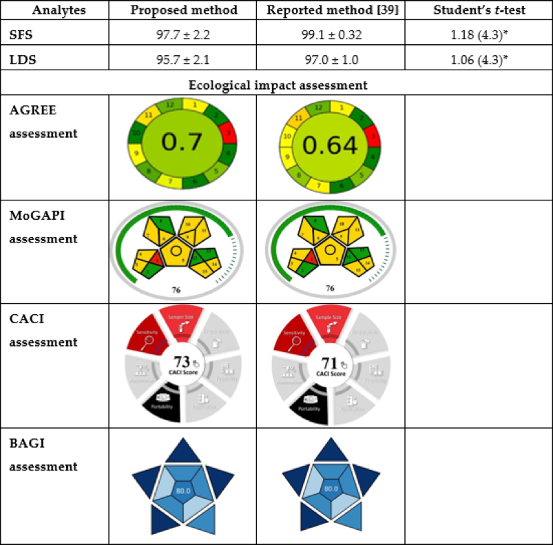 Table 5 Comparison between the results for determination of SFS and LDS using the proposed HPLC and reported spectroscopic methods together with greenness assessment.