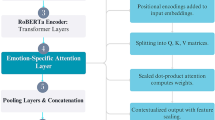 RoBERTa is first applied for contextualized embeddings of an input text \(\:X=[{x}_{1},\:{x}_{2},\:\dots\:,\:{x}_{n}]\), where \(\:{x}_{i}\) is every token in the sequence, and \(\:n\) is the number of tokens in the sequence. The multi-layer structure of RoBERTa enables processing the tokenized input \(\:X\) to acquire more sophisticated contextual relationships between tokens. At the initial stage, every token \(\:{x}_{i}\) is translated into an embedding vector signifying its semantic meaning. The process is to feed each token of the sequence through RoBERTa layers to calculate its hidden state, leading to a rich contextual representation used to feed the emotion classifier. The token embeddings are done through the following function, where d is the hidden size of RoBERTa: