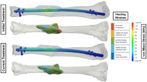 The animal data consisted of \(\:{N}_{op}\) = 33 operated tibiae and \(\:{N}_{con}\) = 26 intact contralateral tibiae from skeletally mature Swiss alpine sheep (age 2–3 years), which were obtained from two previously completed research studies18,26. The first study included operated tibiae with 3 mm osteotomies stabilized by 6-hole titanium plates (broad straight veterinary 4.5/5.0 mm locking compression plate (LCP) with 5 mm bicortical screws; DePuy Synthes, West Chester, PA, USA). The second study had contralateral intact and operated tibiae with 3–17 mm osteotomies stabilized by 11- or 12-hole stainless steel plates (broad straight veterinary 3.5 mm locking compression plate (LCP) with 3.5 mm bicortical screws; DePuy Synthes). All animals with 3 mm osteotomies were maintained for 9 weeks post-op; animals with 17 mm osteotomies were maintained for 12 weeks. The animals were stunned using a captive bolt and exsanguinated, resulting in the death of the animal from cerebral anoxia26. Additional details about these studies can be found in our recent publication that aggregated the datasets27. All animal experiments were conducted in accordance with ARRIVE guidelines and approved by the local governmental authorities of the canton of Zurich, Switzerland and conducted according to the Swiss laws of animal protection and welfare and approved by the local governmental veterinary authorities (license numbers ZH071/17 and ZH183/17).