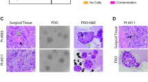 The histological similarity between patient tumors and the corresponding PDO or ODX was assessed by processing tissue samples for routine hematoxylin and eosin (H&E) staining. Organoid and tumor specimens were fixed in 10% neutral-buffered formalin, embedded in paraffin, cut into 4-µm sections, and subsequently stained with hematoxylin and eosin according to standard protocols.