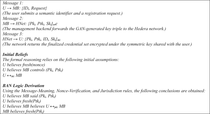Table 6 Idealized registration protocol and BAN logic Derivation.