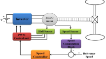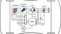 Several speed control schemes have been commercialized for high-impact automotive applications [EV and hybrid EV (HEV)], such as field-oriented control (FOC), direct torque control (DTC) and direct and indirect regulation of active and reactive power flows9. The field-oriented control technique facilitates torque and flux to be controlled in a decoupled manner mirroring the separately excited DC machine. Though the field-oriented control technique offers several advantages, however in sophisticated drive systems, where fine-tuned regulation is demanded, computation of precise flux is vital, moreover it is governed by machine-specific parameters. Several articles have been put forward to augment FOC’s operational stability for coping with parameters variability and uncertainties; however, these schemes introduce complexity and place greater computational strain on digital controllers16,17,18,19,20,21,22,23,24. The direct torque control is another widely used control scheme, which offers enhanced torque response—both static and dynamic through a predefined switching table and hysteresis-based control. In contrast with FOC, the DTC performs in a stationary reference frame and demonstrates lower responsiveness to parameter deviations and uncertain conditions; nevertheless, regarding high-performance drives, unpredictability of stator resistance changes, ineffective flux control, substantial torque ripple, and variable switching frequency grows unbearable. Incorporating vector-based modulation, filters and observers along with direct torque control scheme, makes it possible to tackle above issues to some extent, but at the cost of increased complexity and hence sacrificing the ease of conventional DTC scheme25,26,27,28,29,30,31. Furthermore, the advanced observer-based or model-predictive control strategies (super-twisting sliding mode with disturbance observer, nonlinear extended state observers combined with MPC, and observer-augmented MPC variants) that aim for high dynamic performance and robustness but require significant model knowledge, online estimation, or higher computational resources32,33,34. By contrast, our proposed fuzzy reactive-power control (FRC) targets a complementary design point: observer-free reactive-power driven flux adaptation for induction motor EV drives, with substantially lower implementation complexity and experimentally validated power-factor and RMS-current benefits on a practical dSPACE platform.