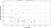 Studying the proinflammatory cytokines like IL-1, IL-6, TNF-α, and IFN-γ in COVID-19 patients is important as the abnormal elevation of these cytokines can lead in certain cases to a cytokine storm6. Therefore, identifying these biomarkers in early stages of the disease has important implications for treatment to decrease mortality for COVID-197. A group of miRNAs can regulate inflammation (referred to as inflamma-miRs) such as miR-146a, miR-21-5p, and miR-126-3p. The miR-146a gene is activated in human monocytes when inflammation occurs. It plays a vital role in regulating viral replication, while being a crucial component of the inflammatory response and the T-lymphocyte-mediated adaptive immune response8. Also, distinct circulating miRNAs, including miR-1, miR-21, miR-133a, miR-208b, and miR-499a, show increased levels in acute myocardial infarction. These cardio-metabolic microRNAs’ expression patterns were associated with clinical severity and mortality in COVID-19 patients9. As the COVID-19 pandemic has become a global health crisis, predicting the severity of the disease early on is crucial for reducing mortality rates and curbing its spread. In this study, we aimed to detect the number of CD4 + and CD8 + T cells, evaluate the exhaustion levels of these T-cells by detecting the PD-1 marker on their surfaces in COVID-19 patients with various degrees of disease severity, and compare these changes with healthy controls. Also, we aimed to compare the expression level of two miRNAs, miR-146a and miR-133a, and the serum level of two proinflammatory cytokines, IL-1β and IL-6, in COVID-19 patients with various degrees of disease severity.