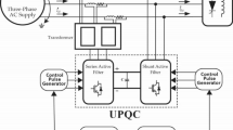 The proposed ANN-based control scheme with Lyapunov optimization for single-phase railway UPQC comprises fundamental extraction using SOGI, shunt, and series APF control with ANNs, PWM generation, and Lyapunov optimization21. This approach enables fast, accurate reference signal generation and optimal tuning of control parameters for improved power quality22. The catenary voltage \({v_t}\)and load current \({i_l}\)waveforms and their fundamental components \({v_{t1}}\)a\({i_{l1}}\)re sensed and extracted using second-order generalized integrators (SOGI). This avoids needing a complex phase-locked loop (PLL) and makes the control frequency adaptive. Shunt APF control generates the reference compensating current \(i_{{sh}}^{ * }\)for the shunt VSI. An ANN is trained to estimate the extracted load current harmonics \({i_{lh}}\)and reactive component\({i_{lr}}\)\({i_{l1}}\)s. Then, the reference is calculated as: