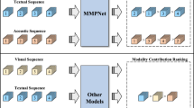 MOSI: The Multimodal Corpus of Sentiment Intensity (MOSI)36 dataset aims to highlight three characteristics: the diversity of viewpoint information, the importance of emotional intensity, and the complementarity between modalities. The author collected 2199 video clips through online sharing website, ranging in length from 2 to 5 min. The dataset contains video, speech, and text data. Each video clip is labeled with an intensity label of \(-3\) (strongly negative) to 3 (strongly positive).