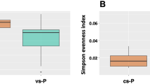 The analysis of the 16S rRNA gene amplicons was performed using Quantitative Insights into Microbial Ecology (QIIME) 2 software in its 2023.9 version30. After importing the paired-end raw reads, primers were removed with q2 cutadapt31, with the option to discard any sequence not containing the primers. Reads were quality filtered, denoised, paired-end merged, sorted into Amplicon Sequence Variants (ASVs) and chimera cleaned with DADA232 used as a qiime2 plugin. Additionally, low quality positions at the 3ʹ end of the reads were removed. Three extra filtering steps were applied after DADA2. The first one, to remove non-prokaryotic sequences with q2 quality control33 by discarding all ASVs that did not match the Greengenes 13_8 database34 clustered at 88% identity, after aligning with VSEARCH35 under permissive parameters (65% identity and 50% query coverage). Taxonomy was assigned to the remaining ASVs using a scikit-learn naïve Bayes classifier36, previously trained against V3-V4 16S rRNA gene region to increase its accuracy37 using the same Greengenes 13_8 database (clustered at 99% identity). A second filter was applied to discard all sequences classified as Archaea, Chloroplast or Mitochondria. Thirdly, all ASVs present in the negative control sample were removed from the analysis (21 ASVs; as previously done27) using ID-based filtering. The phylogenetic tree was built using FastTree38 after aligning the remaining ASVs with MAFFT39. Functional genes present in the predicted metagenome were inferred with PICRUST240 and mapped to KEGG database41 modules.