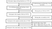 The diagnosis of hypertension was based on the question from the questionnaire, “Ever told you had high blood pressure?” The diagnosis of diabetes mellitus (DM) had six reference criteria: glycosylated hemoglobin, type A1C > 6.5%, fasting glucose ≥ 7.0 mmol/L, random blood glucose ≥ 11.1 mmol/L, oral glucose tolerance test 2 h blood glucose ≥ 11.1 mmol/L, use of diabetes medication or insulin, and being told by a doctor of diabetes, meeting any of these criteria was considered indicative of DM. Diagnosis of hyperlipidemia had three criteria: triglyceride ≥ 150 mg/dL; total cholesterol ≥ 5.18 mmol/L, low-density lipoprotein ≥ 3.37 mmol/L, or high-density lipoprotein < 1.04 mmol/L for males and < 1.30 mmol/L for females; or using lipid-lowering drugs, meeting any of these was considered indicative of hyperlipidemia. Responses to four questions determined cardiovascular disease (CVD): “Ever told had congestive heart failure?”, “Ever told you had coronary heart disease?”, “Ever told you had angina/angina pectoris?” and “Ever told you had a heart attack”, a “Yes” response to any of these questions indicated CVD. Smoking status was classified into three levels: never smoked (smoked less than 100 cigarettes in life), previously smoked (smoked more than 100 cigarettes in life and do not smoke now), and current smokers (smoked more than 100 cigarettes in life and smoked some days or every day). Five levels of alcohol use were identified: never (had < 12 drinks in a lifetime), former (had ≥ 12 drinks in 1 year and did not drink last year, or did not drink previous year but drank ≥ 12 drinks in a lifetime), moderate (≥ two drinks per day for women or ≥ three drinks per day for men, or binge drinking ≥ 2 & <5 days per month), heavy (≥ three drinks per day for women or ≥ 4 drinks per day for men, or binge drinking ≥ 5 days per month), and mild (not meeting the above criteria). The BMI has three levels: normal (BMI < 25 kg/m²), overweight (25 ≤ BMI < 30 kg/m²), and obese (BMI ≥ 30 kg/m²). For physical activity assessment, we used “recreational activity” (before 2006) and “muscle strength” (after 2007) from NHANES, standardizing the data, “unable to do activity” was categorized as no (before 2006), while “vigorous” “moderate” and “both” were classified as yes (after 2007), ultimately determining physical activity as yes or no. Energy intake data from the first dietary recall is in the Total Nutrient Intake folder.