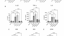 The sections were deparaffinized and dehydrated as described for H&E staining. After that, endogenous peroxidase activity was quenched by treating the paraffin sections with 0.3% H2O2 for 10 min; antigen retrieval was performed with 10 mM citrate buffer (pH 6.0) for efficient epitope exposure; and nonspecific binding of antibodies was eliminated using blocking buffer (5% BSA in PBS) for 10 min. Afterward, the sections were incubated with primary antibodies, phospho-SAPK/JNK (Thr183/Tyr185) (G9) mouse mAb (CST, #9255, 1:50) or anti-NLRP3/NALP3 mAb (cryo-2) (Adipogen, AG-20B-0014.1:200) at 4 °C overnight, followed by incubation with biotinylated IgG and streptavidin-horseradish peroxidase for 30 min at room temperature, after which DAB (2 mg/ml) was used to visualize the immunoreactivity. Finally, the sections were counterstained with hematoxylin and mounted. Images were obtained using a SLIDEVIEW VS200 workstation (Olympus, China). Analyzing IHC images using ImageJ, particularly with the Fuji plugin, selecting 5 views from one slide, and quantifying every view.