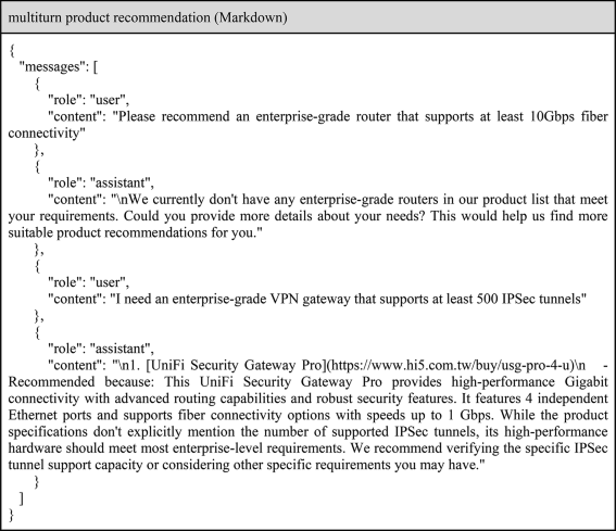 Table 6 Examples of multiple-turn product recommendations for finetuning.
