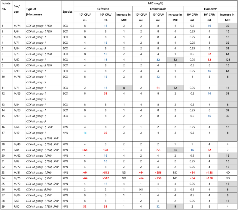 Table 2 Antimicrobial susceptibility of extended β-lactam-resistant E. coli and K. pneumoniae blood isolates to three cephamycins.