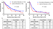 In addition, baseline patient characteristic analysis revealed that although other baseline characteristics (including symptomatic BMs) did not differ significantly between the two cohorts, a greater proportion of patients in the ICIs plus BRT group had their cranial pressure reduced by using mannitol, corticosteroids, and other therapies, and this difference was statistically significant. Our subgroup analysis further demonstrated that combined ICIs plus BRT conferred a survival benefit in the corticosteroids -treated patients. This might imply that NSCLC patients with BMs receiving ICIs combined with radiotherapy tend to experience more severe intracranial hypertension compared to those receiving ICIs alone. According to the 2021 European Association of Neuro-Oncology (EANO)–European Society for Medical Oncology (ESMO) guidelines , administering anti-edema treatment with corticosteroids in patients presenting with neurological deficits may not only alleviate mass effects, such as nausea, vomiting, and fatigue, but also improve survival48. Furthermore, analysis of dynamic MRI from 30 patients with BMs by Teng et al. revealed an increase in permeability in tumors with initially low permeability following brain radiotherapy49. This increase in permeability may exacerbate cerebral edema post-radiotherapy, which Harat et al. reported could persist for up to six months after SRS or WBRT50. In addition to the possibility that brain radiotherapy itself may cause brain injury after radiotherapy, some previous clinical studies have shown that ICIs have the potential to increase the occurrence of radiation-induced brain injury51,52. However, some recent retrospective studies have shown that immunotherapy is not significantly associated with radiation-induced brain injury, and due to the lack of prospective studies and the heterogeneity of patients included, the conclusion needs further exploration53,54,55. Even so, our study found that immunotherapy was not significantly associated with radiation-induced brain injury, which may be linked to the use of anti-edema treatments such as steroids in our cohort. Consistent with the 2022 American Society for Radiation Oncology (ASTRO) guidelines, we posit ICIs alone for asymptomatic BMs, while combining ICIs with brain radiotherapy remains advantageous for symptomatic patients, without increasing the likelihood of post-treatment adverse events, provided anti-edema treatment is employed when appropriate56.