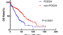 To compare the predictive power of compound nomogram and POD24 or clinical risk factors separately, we then used multivariable ROC to compare the predictive accuracy between nomogram model and individual predictors. The AUC of the POD24 was 0.797 for predicting 3-year OS, which also showed a good predictive effect, but was significantly lower than the POD24-model (AUC 0.797vs. 0.869, p < 0.001, Fig. 4A).Similar results were also observed in predicting 5-year survival (Fig. 4B). To sum up, although POD24 showed an obviously predictive performance, our POD24-clinical nomogram combining the POD24 and clinical risk factors demonstrated high prognostic predictive efficiency than their separation.