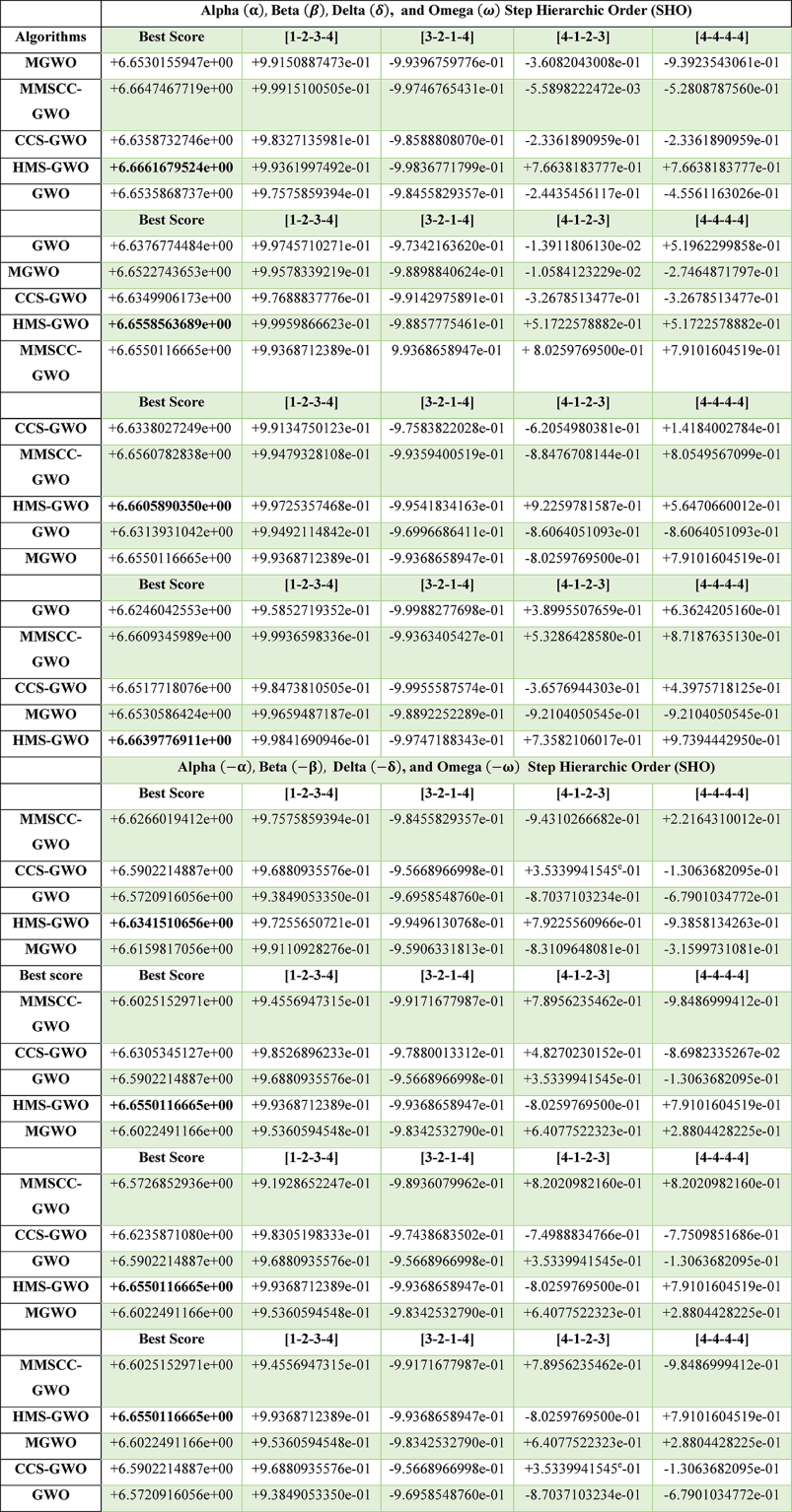 Table 5 Different GWO algorithms’ benchmark functions simulation results.