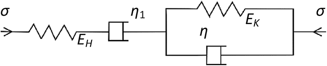 4 | Burgers model | \(\varepsilon = \sigma \left[ {\frac{1}{EH} + \frac{t}{{\eta_{1} }} + \frac{1}{EK}\left( {1 - e^{{ - \left( {\frac{EK}{\eta }} \right)t}} } \right)} \right]\) |
