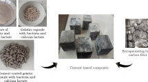 To ensure the survival and functionality of Bacillus subtilis during and after fire exposure, a multi-faceted encapsulation approach was employed. Figure 1 highlights two effective methods each for immobilization and encapsulation used in producing CBC samples, emphasizing these successes amid several unreported attempts. Bacteria at varying proportions (10%, 15%, and 20% by volume) were immobilized within expanded clay and porous aggregates. Expanded clay and porous aggregates were infused with bacterial solutions and coated with a cement paste layer. A water-based bacterial solution, prepared in equal proportions by volume, was absorbed by the expanded clay and porous aggregates over 24 h. These materials were then coated with cement paste before being incorporated into the concrete samples. This setup acted as a thermal barrier, reducing heat transfer and maintaining internal temperatures below the bacterial survival threshold (~ 70 °C) during fire exposure.