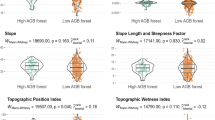 The soil types can be broadly classified into three groups. The first group includes relatively shallow, highly drained, fine-loamy, moderately erosive, and slightly stony classified as Dystric Eutrudepts soils. The second type consists of loamy soils, classified as Lithic Udorthents, which are found on steep slopes with sandy loam and loamy surfaces. These soils are very shallow, highly drained, severely eroded, and highly stony. The third major soil type belongs to Typic Udorthents, which occurs on moderately sloping land surface and are characterized as moderately deep, loamy texture, excessive drainage, moderate erosion, and slight stoniness29. The soils are slightly acidic in nature with pH values ranged from 3.1 to 8.2, with a mean value of 5.4 ± 1 and 5.6 ± 0.9 for forest and degraded forest, respectively. The electrical conductivity (EC) values ranged from 2 to 844 µS cm⁻¹, with a mean value of 89.3 ± 98.6 µS cm⁻¹ for forest and for 100.8 ± 118.7 µS cm⁻¹ degraded forest. The majority of soils were sandy loam (45%), followed by loam (38%), silt loam (7%), loamy sand (4%), sandy clay loam (3%), clay loam (3%), silty clay loam (1%), and sand (0.17%). The sand content was observed 60.9 ± 12.1% in degraded forest and 55.6 ± 10.9% in forest. The silt content was observed 32.2 ± 10.4% in forest and 28.1 ± 9.5% in degraded forest. The clay content was observed 12.2 ± 8.3% in forest and 11 ± 5.5% in degraded forest. The total organic carbon (TOC) content ranged from 0.99 to 13.0%, with an average of 4.6%30.