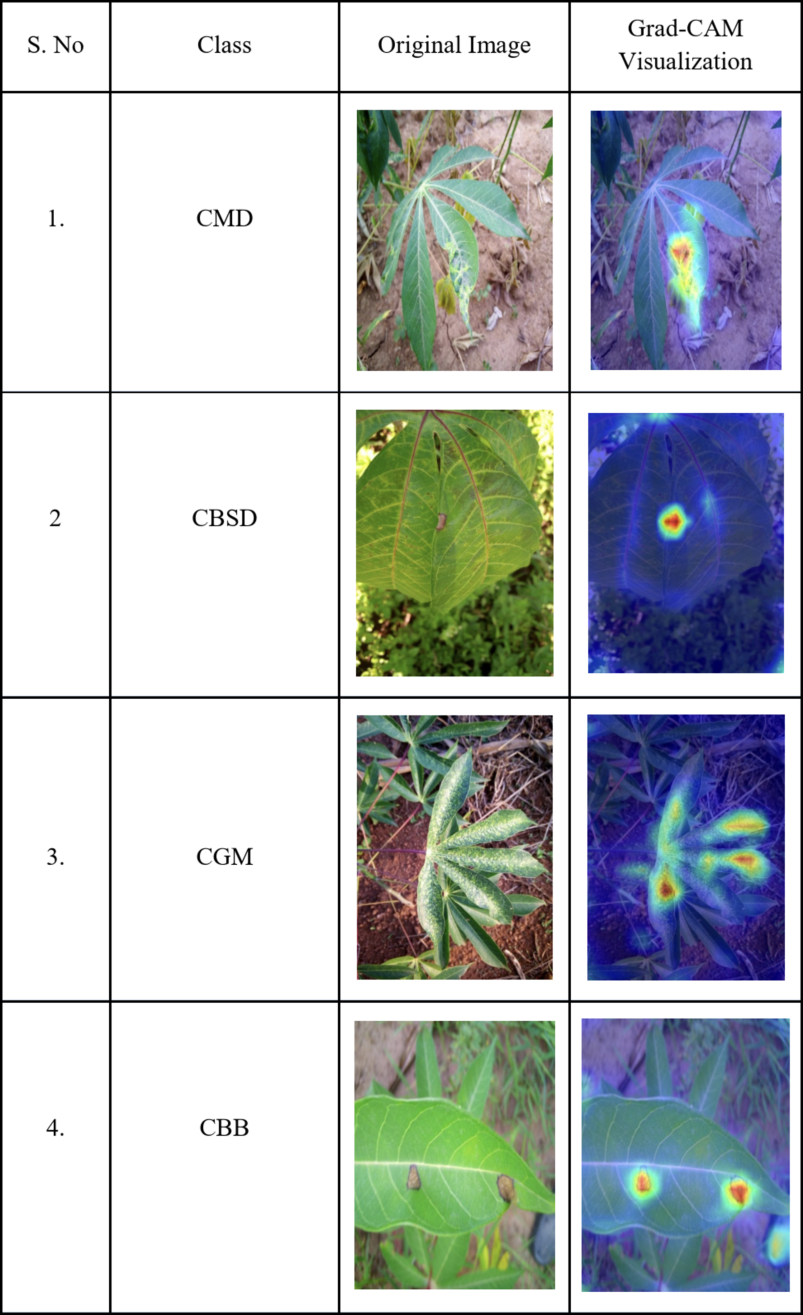 Table 4 Visualizing diseased regions of cassava leaves using Grad-CAM.