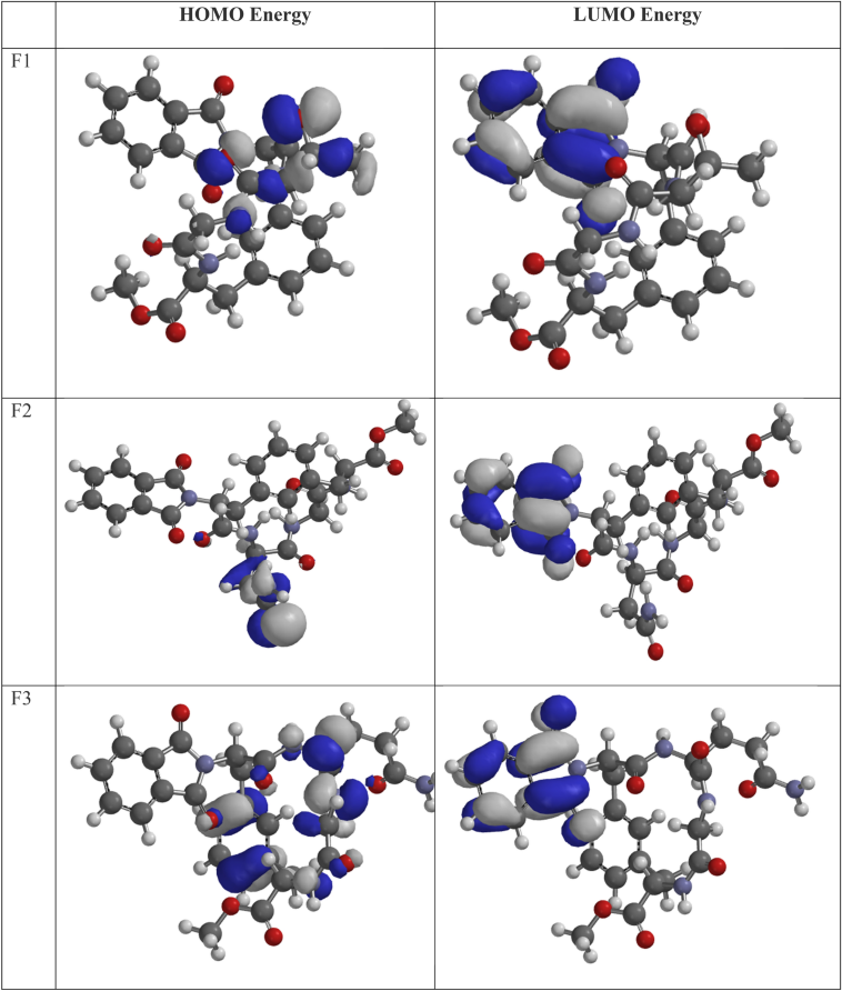 Table 4 Predicted HOMO–LUMO overlay for F1-F10.