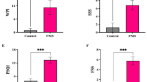 MDA levels were 5 ± 0.69 units in the control group and 5.76 ± 1.04 units in the FMS group. The difference between the two groups was statistically significant (p = 0,000) (Fig. 2) (Table 1). TAS values were 1.07 ± 0.14 in the control group and 1.03 ± 0.16 in the FMS group. There was no statistically significant difference between the two groups (p = 0.705) (Fig. 2) (Table 1). TOS values were 22 ± 7.97 in the control group and 35.86 ± 13.26 in the FMS group. The difference between the groups was statistically significant (p = 0,000) (Fig. 2) (Table 1). OSI values were 2.09 ± 0.88 in the control group and 3.63 ± 1.81 in the FMS group. The difference between the two groups was statistically significant (p = 0,000) (Fig. 2) (Table 1).