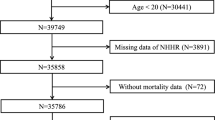 The National Center for Health Statistics (NCHS) conducts the publicly available, cross-sectional NHANES survey, which collects data representative of the U.S. noninstitutionalized civilian population20. Numerous data categories are encompassed in the scope of NHANES database, including demographic, dietary, laboratory, examination and questionnaire-based information. Written informed agreements were obtained from all participants, and the research procedures and methods were approved by NCHS Research Ethics Review Board.