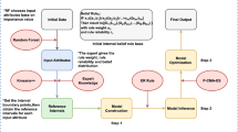 where \(A_{i}^{k}\) denotes the reference value about the sampled data \(x_{i} (i = 1, \ldots ,M)\) and \(\beta_{n,k} (n = 1, \ldots ,N;k = 1, \ldots ,L)\) denotes the belief degree about the posterior attribute \(D_{n}\). \(\theta_{k}\) is the weight of the kth belief rule. \(\delta_{i}\) is the weight of attribute \(X_{i}\). L is the number of rules in the belief rule base.