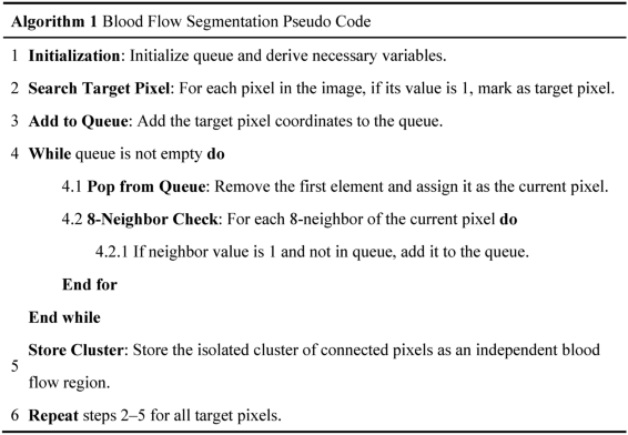 Table 1 Algorithm 1 Blood Flow Segmentation Pseudo Code.
