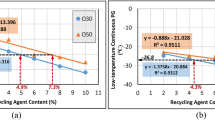 The effect of natural weather conditions on the rheological properties of asphalt binders at both high and low temperatures was evaluated using a dynamic shear rheometer (MCR302, Anton Paar, Graz, Austria)37during a temperature sweep test. Several criteria were acquired and computed, including complex moduli (G*), phase angles (δ), and the temperatures T30, T45, and T60 corresponding to the limiting phase angles of 30°, 45°, and 60° respectively38. The rheological test protocols are as follows: (1) The test temperature ranges from 52 °C to 82 °C, with a 6 °C increment, while the controlled strain was maintained at 12% and the loading frequency set to 10 rad/s (1.59 Hz). (2) The test temperature ranges from − 12 °C to 30 °C, with a 6 °C increment, while the controlled strain was set at 1% and the loading frequency at 10 rad/s (1.59 Hz).