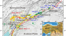 Field observations immediately after the 2016 Mw 6.6 Muji earthquake confirmed that the earthquake occurred on the Muji fault, and identified two sections of surface-faulting deformation with a length of several tens of meters22. The Muji fault is a dextral strike-slip structure that connects the Kongur normal fault system to the east, the major normal fault within the Pamir Plateau23. Early geological investigations determine a slip rate of 4.5–11 mm/a along the Muji fault16. A recent field investigation proposes strike-slip and vertical (normal motion) rates of ~ 6–9 mm/a and ~ 0.3 mm/a respectively17. GPS observations confirm dextral-dominated motion along the fault (Fig. 1), with a slip rate estimated at 9.4 ± 2.5 mm/a18. During the observational period (2014–2021) of Sentinel SAR, three Mw ≥ 6.0 earthquakes occurred in the areas surrounding the Muji fault. The impact of co- and post-seismic deformation caused by these earthquakes on SAR data processing is explained below (see section "Results").