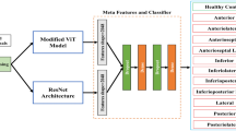 Ensemble learning is a machine learning approach that combines multiple base models or weak learners to enhance prediction accuracy and decision-making35,36. Ensemble learning improves performance by combining multiple models, reducing individual limitations, and enhancing prediction accuracy. In37, Elmannai et al. proposed a stacking ensemble model based on CNNs. Three pre-trained models were used on two MI datasets for ECG heartbeat, namely MIT-BIH and PTB. The ensemble model collected the output probabilities of the CNN models, which were then classified by four machine learning algorithms. The random forest classifier achieved the highest accuracy for both datasets, with 99.8% for MIT-BIH and 99.7% for PTB. In9, Al-Hejri et al. proposed a novel framework, called ETECADx, for breast cancer identification based on the feature ensemble concept. Their approach included the latest advancements in transfer learning, ensemble learning, and the transformer encoder model. The ensemble learning model performed better than the individual AI models with an accuracy of 97.16%. Additionally, the suggested ETECADx model surpassed the ensemble model with an accuracy of 99.58%. For COVID-19 prediction, Ukwuoma et al.35,36 presented two consecutive research studies based on the ensemble and ViT concepts achieving promising evaluation results. This encourages us to apply such an ensemble technique for CVD classification. Al-Haidri et al.38 presented a A deep learning framework using Mask-RCNN automatically segments lumbar vertebrae from MR images, detects six anatomical landmarks, and calculates vertebral heights. It accurately assesses vertebral deformities with high precision, significantly streamlining the manual measurement process. Moravvej et al.39 presented an automatic myocarditis classification model using deep reinforcement learning and population-based algorithms to address imbalanced CMR data. Wang et al.40 used radiomic analysis of fused multi-parametric CMRI sequences for myocardial infarction detection. The T1 + sBTFE-weighted fusion method achieved the AUC of 0.97%.